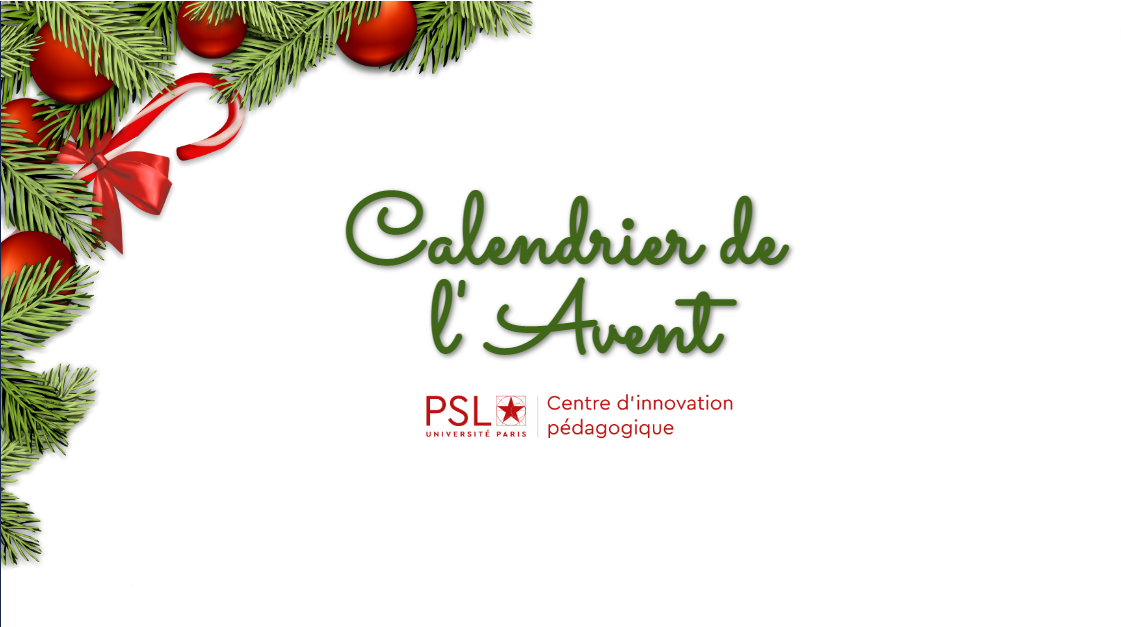 Pour célébrer les fêtes de fin d’année, le CIP vous propose son calendrier de l’Avent spécial pédagogie. Découvrez au fil de ces 24 cases, des idées de lecture, des ressources sur de nouvelles approches et méthodes pédagogiques, des astuces sur les outils du CIP, des recettes gourmandes et bien d’autres surprises.